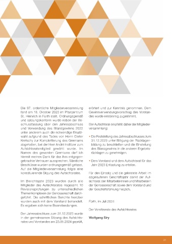 fand am 18. Oktober 2023 im Pfarrzentrum Gewinnverwendungsvorschlag des Vorstan-